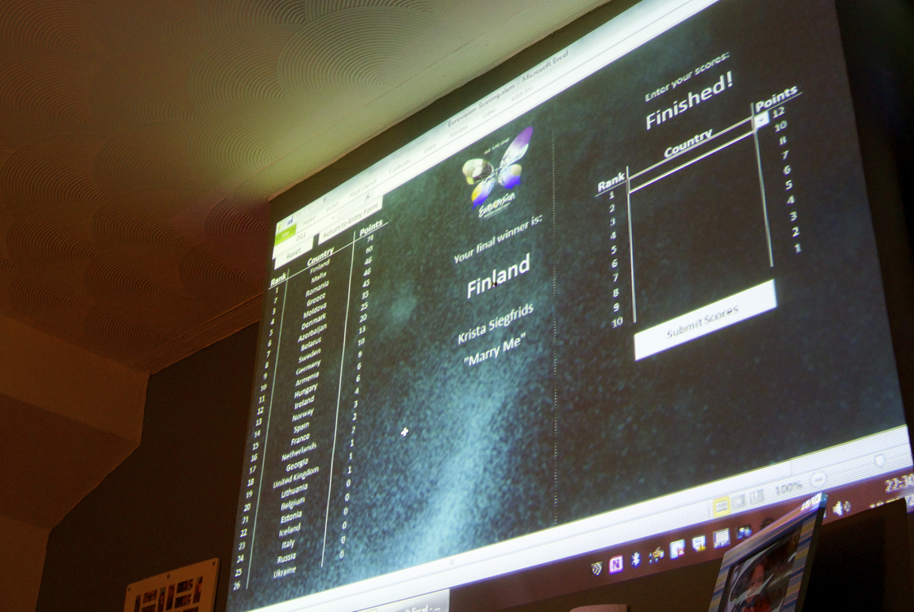 Friends from the south and the north descended on friends in the middle for our first Eurovision party. But this was no ordinary party – we had a spreadsheet projected on the wall. It was a pretty damn amazing and I almost fainted at the beauty (visit Mild Concern for all your data needs. Seriously).