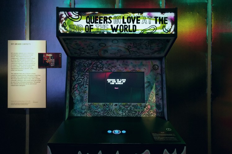 I loved the arcade games at the end of Design/Play/Disrupt. I was pretty good at the three Line Wobbler LED games by Robin Baumgarten, and desperately wanted to play a game called Breakup Squad but some kid wouldn’t get off the machine. I also got to play Queers in Love at the End of the World – a beautifully poetic game by Anna Anthropy. It was a crowded gallery though, and the rest of the games all had queues of people waiting to play.